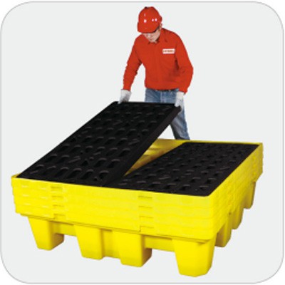 쌓을 수 있는 구조의 2개의 드럼 스필 팔레트는 공간 및 운송 비용을 절약합니다.
